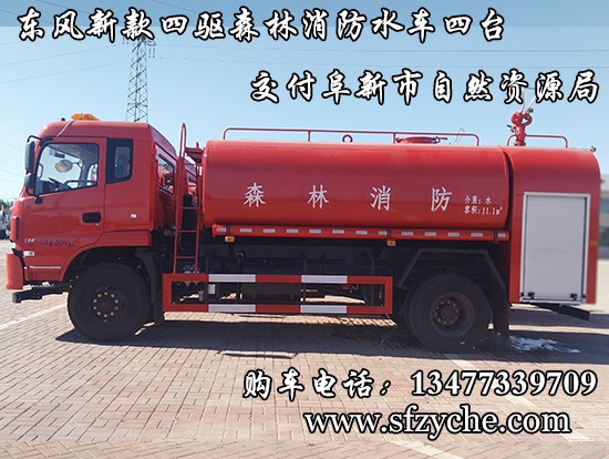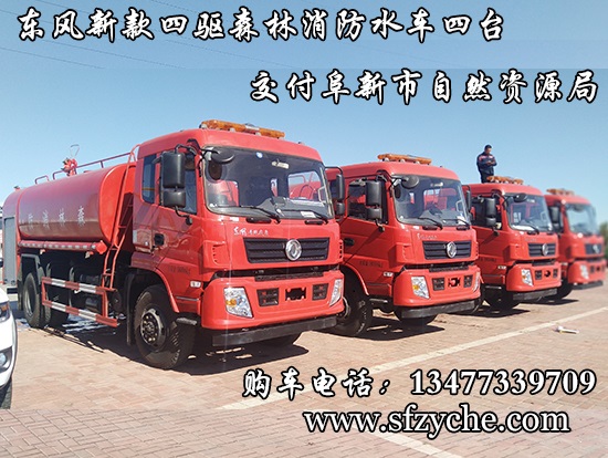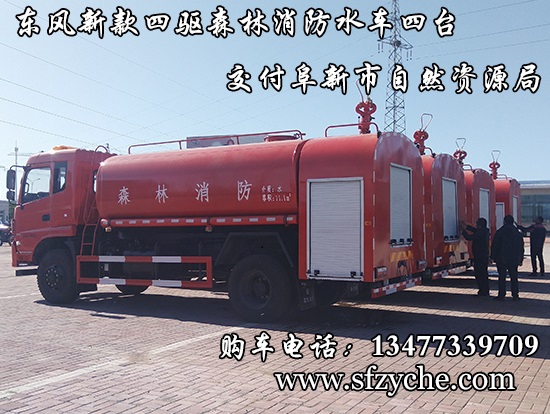 遼寧省阜新市自然資源局下屬的林業(yè)和草原局森林防火辦公室采購的東風(fēng)新款四驅(qū)森林消防水罐車具體參數(shù):東風(fēng)四驅(qū)越野森林消防水罐車_東風(fēng)11.1噸四驅(qū)消防水車_國五四驅(qū)越野森林滅火水車_東風(fēng)4×4越野SCS5183GPSEQ型四驅(qū)綠化噴灑車簡介:采用東風(fēng)EQ2180GD5DJ型越野汽車底盤,東風(fēng)153寬體駕駛室(選裝D913新款駕駛室),4×4驅(qū)動(dòng),康明斯ISB190 50國五發(fā)動(dòng)機(jī),六檔變速箱,東風(fēng)商用車橋,前驅(qū)動(dòng)橋3.8噸,后橋10噸,10.00R20輪胎,軸距4500mm,電動(dòng)玻璃,方向助力,斷氣剎,ABS。罐體采用優(yōu)質(zhì)碳鋼Q235板材,板材厚度4mm,罐體容積11.1立方,安裝夾心取力器,后置泵箱,消防栓接口左右各一個(gè),消防炮采用PS30-50D消防水炮,流量40L/S/1.0MPa 水射程:≥50m,消防泵采用常壓消防泵型號:CB10/40車用消防泵,流量:40L/s,壓力:1.0MPa,駕駛室頂部安裝長條警燈帶喊話器,全車顏色橘紅,兩側(cè)噴涂白色森林消防字樣。