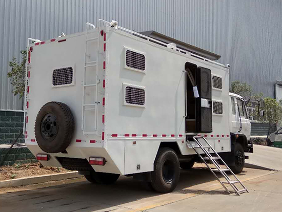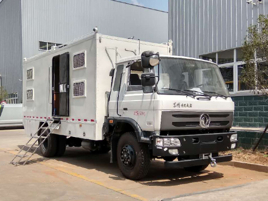 三、東風(fēng)四驅(qū)越野宿營車, 4驅(qū)越野宿營車用途:適用公安、特警、公安、邊防、衛(wèi)生、交通、礦山、地質(zhì)、軍隊等部門]長期野外作業(yè)、勘察、救援、搶險、救災(zāi)等宿營用,箱體空間利用大化。內(nèi)部配置:配備前儲物柜、后儲物柜、液晶電視機應(yīng)急燈、頂燈、頂置空調(diào)、床墊、被褥等。選裝配備8組豪華折疊臥鋪、未鋪上下梯、安全保險帶、電源插口等,細(xì)節(jié)精致。外置燃油加熱器、頂護欄、前爬梯、隱藏抽拉梯、專用房車門、專用玻璃滑窗、警示燈等。