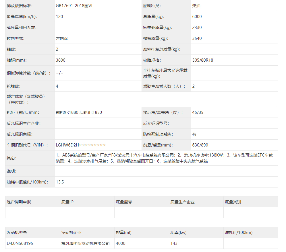 東風猛士民用版EQ2063EYY6J型長頭單排四驅越野底盤是東風越野車公司針對民用方面的首款軍轉民產(chǎn)品代表,其繼承東風軍用猛士的正規(guī)血統(tǒng),品質優(yōu)異,技術過硬。東風猛士民用版EQ2063EYY6J采用東風猛士M50型四驅底盤改造而成,采用東風康明斯D4.0NS6B195型國六柴油發(fā)動機,195馬力 ,排量4L帶增壓,最大扭矩600/1100-2200(N.m/r/min);猛士5擋軍用手動變速箱;分動箱為四輪全時驅動帶高低擋;軸距3800mm;整備質量3540kg;核定載質量2460kg;輪胎采用305/80R18MPT全鋼子午線輪胎,帶自動中央充放氣系統(tǒng);整車總質量6000kg,國六B排放全國可上黃牌,整車尺寸:5320*2310*1950mm;最小離地間隙388mm,最大垂直越障400mm,通過性強,適應高海拔極寒極熱地區(qū),全國暢行無阻,最高車速可達120km/h。