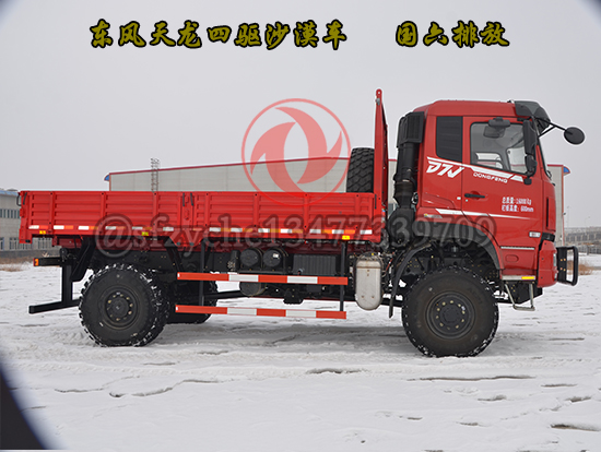 全新國六東風四驅六驅沙豹沙漠車為特殊行業(yè)精心打造,適合全地形無路區(qū)域的全時4×4、6×6驅動車型,選用康明斯9升國六發(fā)動機,動力涵蓋340---400馬力,動力強勁、性能可靠,采用7噸及10噸級雙級輪減前、后橋,離地間隙大、通過性好,前、中后橋配備輪間、軸間差速鎖裝置可適應極惡劣道路狀況下的通過要求,先進的遠距離電控氣動裝置可實現(xiàn)高、低檔及前橋鎖止功能的轉換,多管旋流式三級空濾進氣系統(tǒng)可有效地阻止極細微的粉塵進入發(fā)動機,外接式中央充放氣裝置可同時或單獨快速調節(jié)輪胎氣壓,越野和沙漠輪胎的互換可使車輛通過性適合各種地形地貌,選裝前后液壓絞盤等裝置能使車輛在各種環(huán)境下保持良好的狀態(tài)及自救互救功能,沙漠車使用工況:用于無路地域的貨物運輸,適應沙漠、浮土、戈壁、礫石、泥濘、山地、崎嶇、冰雪等路況。耐溫±45℃,可作為石油物探、地質勘查、大地測量、文物考古、草原監(jiān)理、畜牧防疫、森林消防、邊境巡邏、沙漠旅游等行業(yè)用車,是改裝專業(yè)工程車如:地震儀器、爆破器材運輸、沙漠冷藏、沙漠隨車起重運輸、工程搶險、林業(yè)吊運、搶險救災等車輛及越野房車的理想底盤。