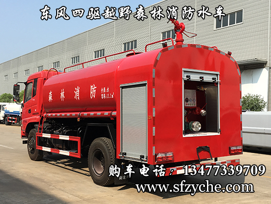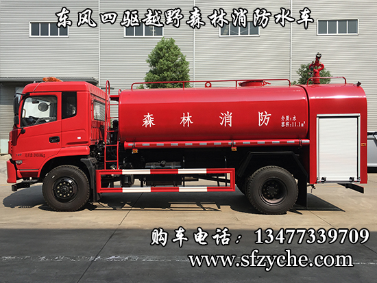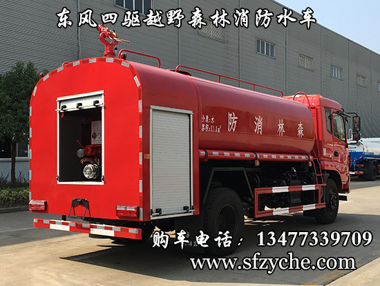 東風新款四驅越野森林消防灑水車_東風11.1噸四驅消防水車_國五四驅越野森林滅火水車_東風4×4越野SCS5183GPSEQ型四驅綠化噴灑車簡介:采用東風EQ2180GD5DJ型越野汽車底盤,東風D913新款駕駛室,4×4驅動,康明斯ISB190 50國五發(fā)動機,六檔變速箱,東風商用車橋,前驅動橋3.8噸,后橋10噸,10.00R20輪胎,軸距4500mm,電動玻璃,方向助力,斷氣剎,ABS。罐體采用優(yōu)質碳鋼Q235板材,板材厚度4mm,罐體容積11.1立方,安裝夾心取力器,后置泵箱,消防栓接口左右各一個,消防炮采用PS30-50D消防水炮,流量40L/S/1.0MPa 水射程:≥50m,消防泵采用常壓消防泵型號:CB10/40車用消防泵,流量:40L/s,壓力:1.0MPa,帶前沖,駕駛室頂部安裝長條警燈帶喊話器,全車顏色橘紅,兩側噴涂白色森林消防字樣。