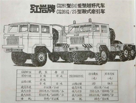 10噸級(jí)紅巖CQ261型6×6重型軍用越野汽車和紅巖CQ261Q/25型6x6牽引車發(fā)展歷程。