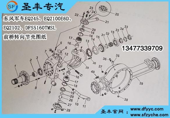 東風EQ2102六驅(qū)平頭軍車前橋零件號及對應名稱: