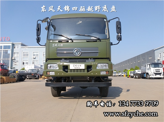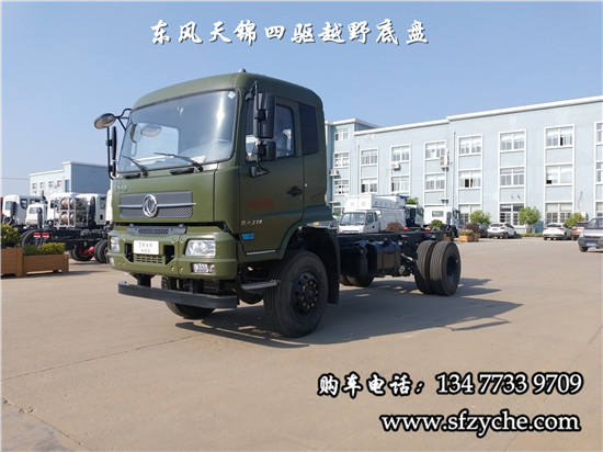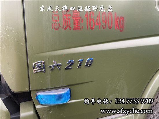 相關(guān)車型國六排放天錦(4×4)越野底盤,采用DFV2163GP6DJ型國六排放東風(fēng)天錦四驅(qū)越野底盤,東風(fēng)天錦D530一排半駕駛室,4×4驅(qū)動(dòng),康明斯B6.2NS6B210國六發(fā)動(dòng)機(jī)210馬力,最大扭矩:850N.m/1100-1700rpm,排量6.2L、韶齒手動(dòng)六檔變速箱,東風(fēng)德納車橋,前驅(qū)動(dòng)橋4.5噸,后橋10噸,10.00R20輪胎,軸距4500mm/4700mm,大梁280mm,電動(dòng)玻璃,方向助力,斷氣剎,ABS,大燈自動(dòng)調(diào)節(jié),自動(dòng)調(diào)整臂,選裝原廠空調(diào)。