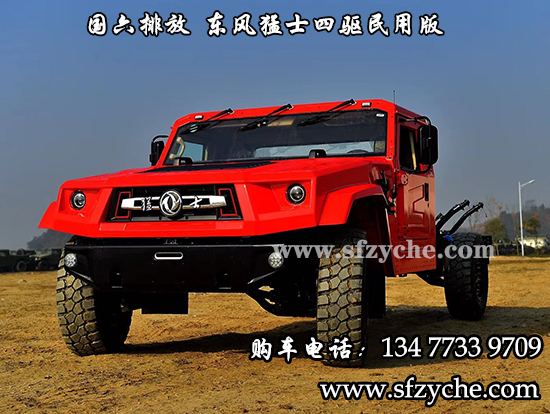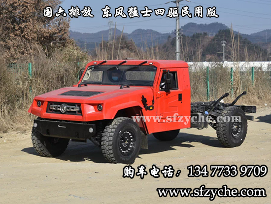 東風(fēng)猛士民用版EQ2063EYY6J型長(zhǎng)頭單排四驅(qū)越野底盤是東風(fēng)越野車公司針對(duì)民用方面的首款軍轉(zhuǎn)民產(chǎn)品代表,其繼承東風(fēng)軍用猛士的正規(guī)血統(tǒng),品質(zhì)優(yōu)異,技術(shù)過硬。東風(fēng)猛士民用版EQ2063EYY6J采用東風(fēng)猛士M50型四驅(qū)底盤改造而成,采用東風(fēng)康明斯D4.0NS6B195型國六柴油發(fā)動(dòng)機(jī),195馬力 ,排量4L帶增壓,最大扭矩600/1100-2200(N.m/r/min);猛士5擋軍用手動(dòng)變速箱;分動(dòng)箱為四輪全時(shí)驅(qū)動(dòng)帶高低擋;軸距3800mm;整備質(zhì)量3540kg;核定載質(zhì)量2460kg;輪胎采用305/80R18MPT全鋼子午線輪胎,帶自動(dòng)中央充放氣系統(tǒng);整車總質(zhì)量6000kg,國六B排放全國可上黃牌,整車尺寸:5320*2310*1950mm;最小離地間隙388mm,最大垂直越障400mm,通過性強(qiáng),適應(yīng)高海拔極寒極熱地區(qū),全國暢行無阻,最高車速可達(dá)120km/h。